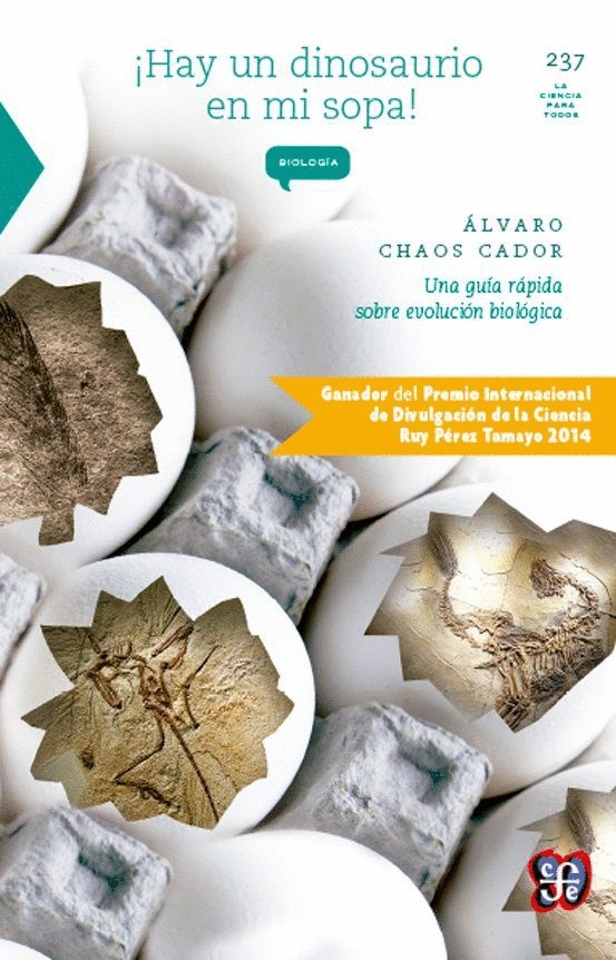 A vuelo de pájaro pero sin renunciar a la observación detenida, esta obra nos guía por el fascinante paisaje de la evolución de los seres vivos. El itinerario arranca desde el propio autor, considerado como miembro de una especie biológica, y llega hasta la copa de los árboles, pasando por los dinosaurios y las aves, las hormigas y las neuronas, los procesos de especiación, la genética de poblaciones, el costo reproductivo del sexo y algunos monstruos de fábula. Con una acertada mezcla de información sobre procesos evolutivos, temas históricos y asuntos culturales, sus brevísimas secciones no dan respiro al lector en este recorrido por la biología de la evolución. La obra está destinada a un público amplio, que disfrutará la precisión del científico profesional con una mirada propia y fresca, un fino sentido del humor y una prosa que fluye sin obstáculos. ¡Hay un dinosaurio en mi sopa! obtuvo en 2014 el II Premio Internacional de Divulgación de la Ciencia Ruy Pérez Tamayo.